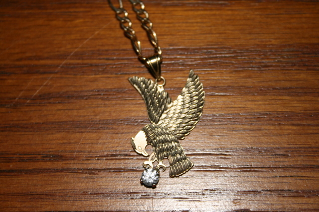 I still have this eagle (which I had modified to carry a diamond in its talons) and wear it on occasion. I bought it for myself in 2000 when a relationship went south. On the back, in very tiny script, is the scripture Isiah 40:31 (They that wait upon the Lord shall mount up on wings as eagles; they shall run and not be weary, they shall walk and not faint.). I know of one other person who has a pendant such as this (though without the diamond). She went to a church that I attended from 2000-2002. (The eagle is currently in my safe deposit box.)