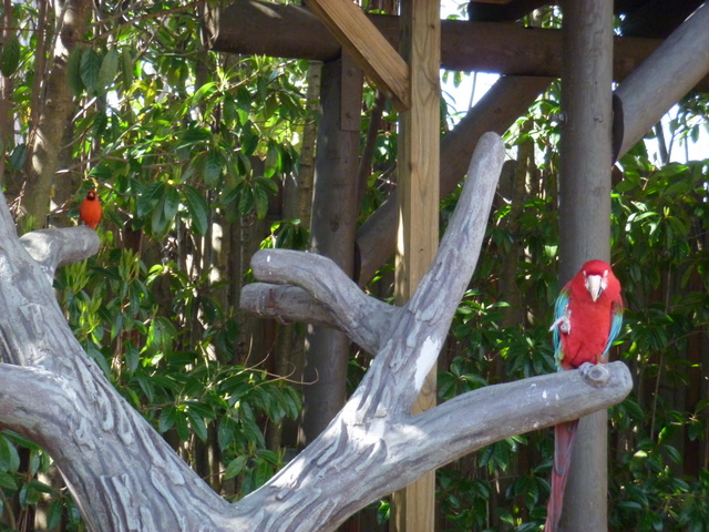 This photo was taken at Busch Gardens Williamsburg in the spring of 2011. As you can see, one of the parrots they have in captivity was paid a visit…by a cardinal. They posed for several photos, and then the Cardinal actually descended to the ground under the parrot to retrieve lost seed. The parrot seemed to pay the Cardinal no mind.
