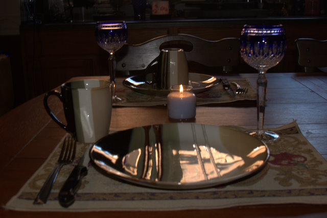 It’s a tradition in my house to “turn down” a place setting (as the far place setting is done, here) in honour of those who cannot be at the table with me, and in honour of those who are no longer with us. A way of remembering. A small, seemingly insignificant action, but one that happens at every dinner I host, every holiday I celebrate, every get together that I participate in. A moment of silence is given while we think of those we love.