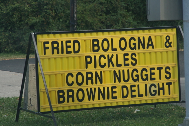 I realize that Americans will deep fry anything, and I don’t want to think of the increased sodium content of fried pickles (though even mainstream US restaurants such as Texas Roadhouse have them on the menu), and corn “nuggets” are just another name for corn “fritters”; bologna is a processed deli meat already high in sodium, and then to top it off with whatever a “brownie delight” is makes it sound like this is an advertisement for open heart surgery.