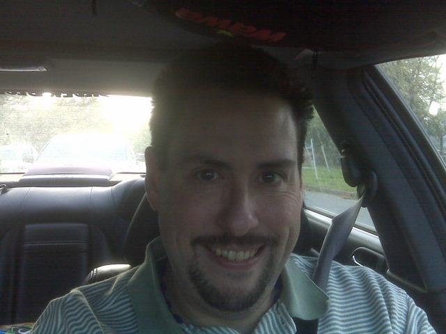Well, the watch is mine. The shirt, I used to own (it was silk, and after 4 or 5 years, it started to develop holes, etc. and had to be disposed of). The “Believe” necklace is there, so … it IS me (in fact, I can tell I’m also wearing my Eagle pendant necklace as well (you can barely see it to the left of the flash unit)). The corner of the picture frame makes it look like I am wearing an earring, which I haven’t since 2007. Oh wait. It’s that I’m not all spiky! I had this hairstyle (parted on one side, due to numerous cowlicks) for too many years to count. The spikes are easier to tend to, and allow me to towel and go.