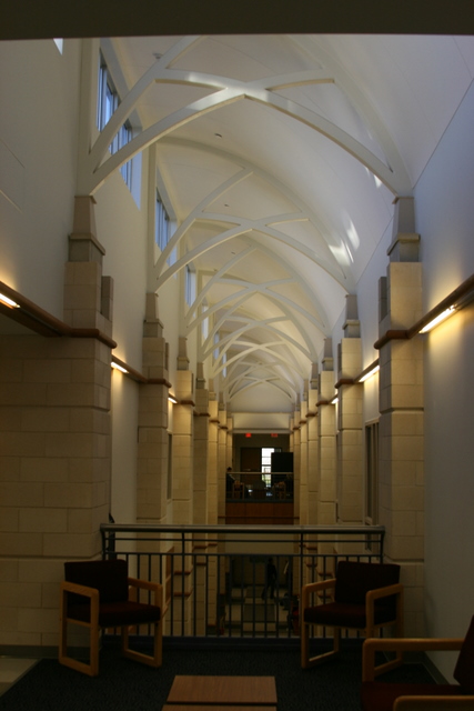 The building I work in on campus, though renovated in 2000-2002, has some beautiful architectural aspects. As with every building on campus that is new construction, or renovation, it includes arches:
