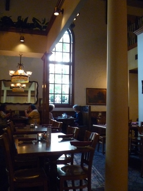 The building the restaurant is housed in was built in 1873 as the 2nd Presbyterian Church in Norfolk, VA. Freemason Abbey has been there since 1989. You can see where the original stained glass window was — it’s been bricked up for years, and has a mural on the inside of the building. It does boast a great open floor plan however, with dining on two levels: