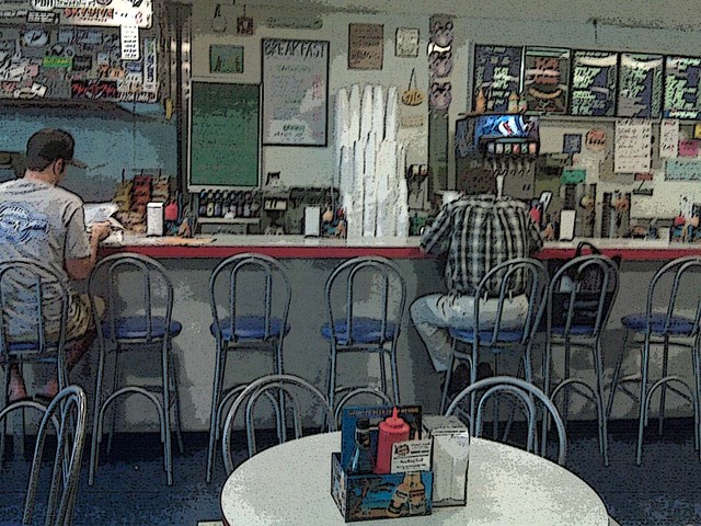 Well, one option is the run the phone over with your car, but that can be messy. One day, at lunch, I snapped a shot of the diner counter where I was, and, of course, the focus was way too soft to be of any real use … that is, until I thought about being artistic.