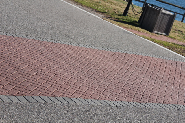 Here, you can still see the spikes from the old ties driven into the concrete.