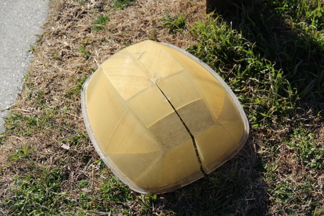 It’s as if, perhaps a bird flew into it — after all, it doesn’t appear to have been hit by a vehicle.