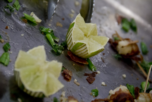 There’s just something about this photo that I really enjoy. Heaven knows it wasn’t the food! Still, at least the limes were cut decoratively and had their peels also decorated.