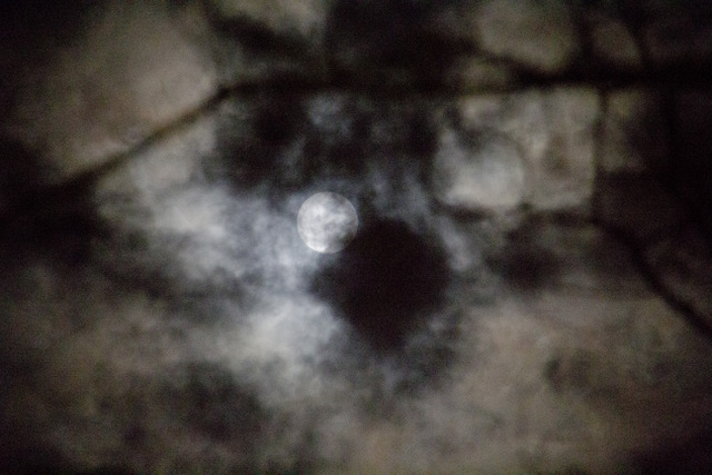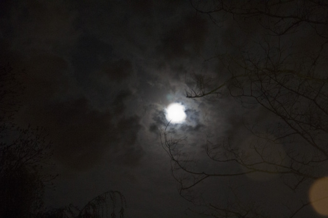 The lower the ISO, the better. I thought a higher ISO would mean shorter exposure but I should have gone for shorter shutter speed. Note that above, you can see the roundness of the moon in the dark cloud — the brightness (and spillage) are creeping outside the size of the moon.