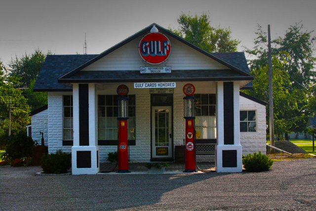 1On the way out of Kenton, Ohio, en route to Columbus is a “restored” Gulf Service station. I’m pretty sure it didn’t start off selling “That Good Gulf Gasoline”, and in fact, it most likely never sold gasoline at all.
