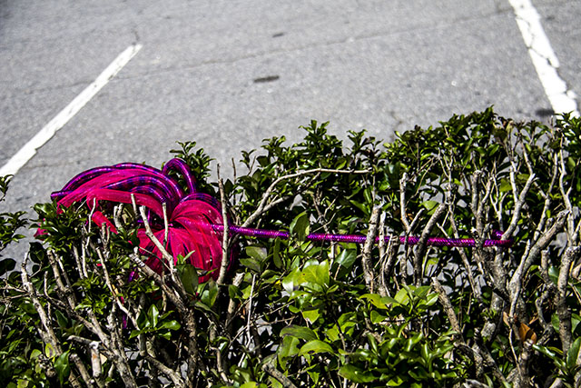 Exactly what this, cast off in the shrubs, was is beyond me. I do know that it was about 2 blocks over from Croc’s, where they have a “Drag Brunch”. Perhaps some Drag Queen was accosted and lost one of her accoutrements. I know not.