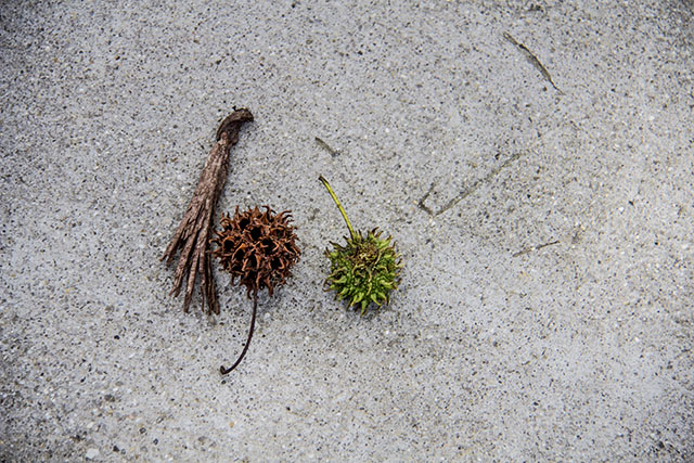 From a Sugar Gum tree, “Gum balls” (which hurt like a lego if you step on them barefoot). I didn’t pose this photo…it’s exactly as I came across them.