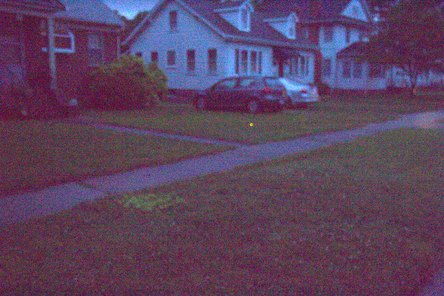 Standing in the street, in the still, strange quiet time, with the sky having that strange green hue that tornadoes bring, I noticed something. A flicker. First to the left. Then to the right. Could I capture this with my camera?