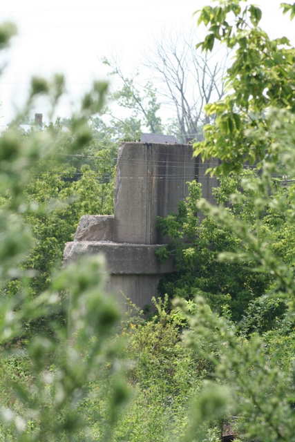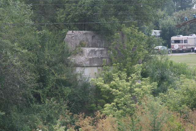 Sometime in the late 80s, I think, they took the trestle (and rail line it carried) out; however, they left the support stanchions.