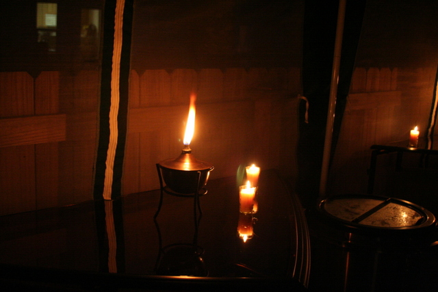 Take this photo, from October 21, 2006. I’d gone to a Halloween party. The lights were low, and there was a prop “rigged” to the stairs. A shot taken from a tripod, or with IS, wouldn’t have been as effective as this shot, affected by camera shake:
