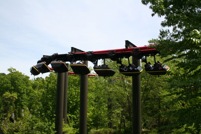 Howl I miss this coaster. Oh, sorry for the misplaced pun. 🙂 I’ve heard differing stories as to why Busch Gardens, Williamsburg removed the Wolf. Ridership was down. (Huh?) The ride had reached the end of its serviceable life. (Possibly, but Nessie is older and still running). The ride was one of three remaining in the US of its type (where you were suspended UNDER the tracks entirely enclosed in the car), and the company who made it (and produced maintenance parts) went out of business, therefore they couldn’t keep it running. (Probably.)