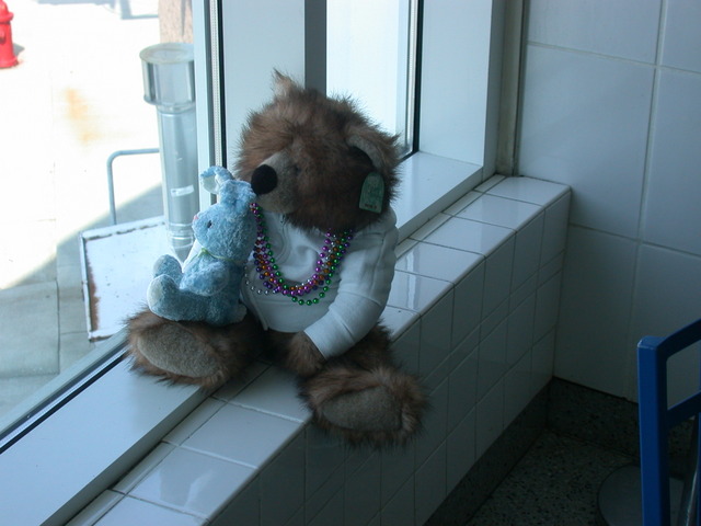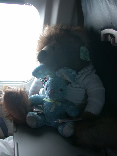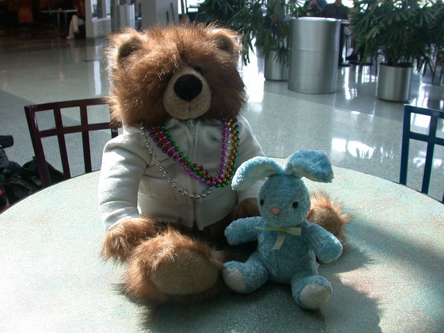 Roxette Bunny™ and Forester Bear on their way home from New Orleans (at the Cincinnati Airport):