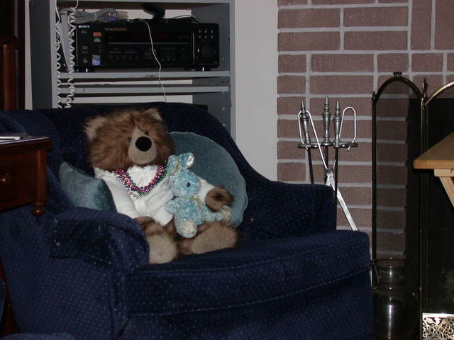 My Angel Bear. She’s a tree topper, but tends to live her life without that discomfort these days. LOL.