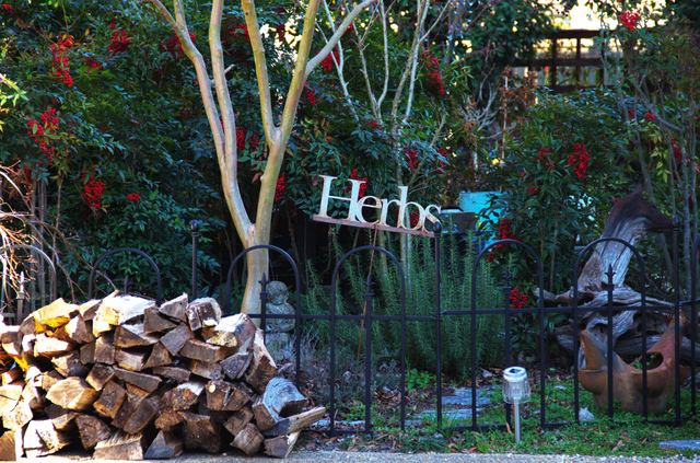 Rosemary. She appears to be growing a pile of firewood, too, though I’ve not seen seeds for it in the store.