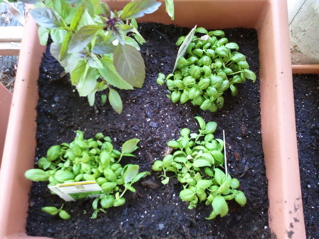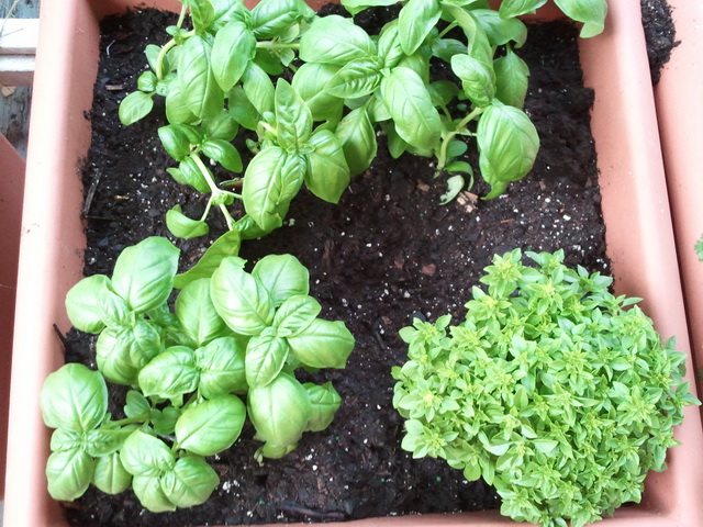 Finally, more regular basil, and in the lower right, a “boxwood basil”. Same scent, different leaf structure. I love making pesto, and that is why I grow such a plethora of basil.