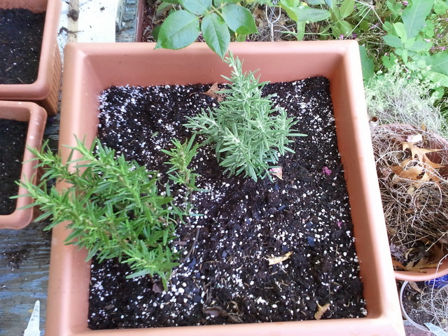 Rosemary. She appears to be growing a pile of firewood, too, though I’ve not seen seeds for it in the store.
