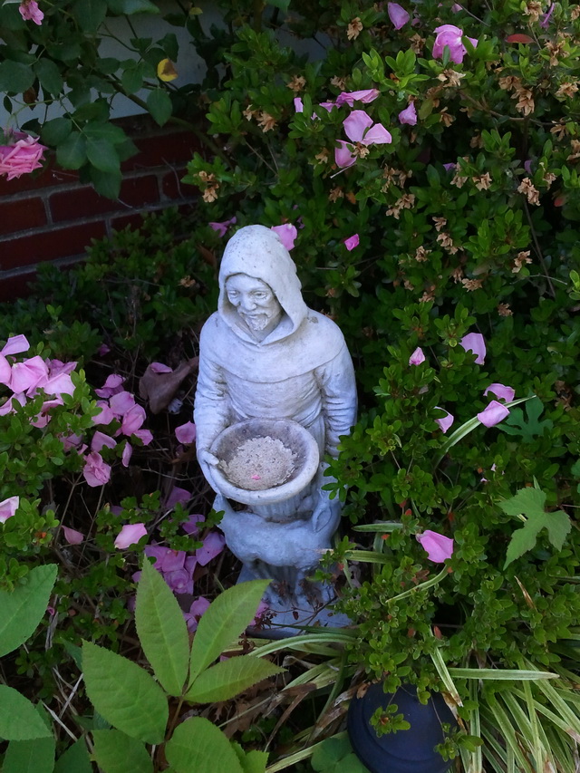 Saint Francis of Assisi, (or as I’ve been known to call him, Saint Francis who’s a sissy). The statuary was a kind gift from my friend (and coworker), Vijay Kalburgi.