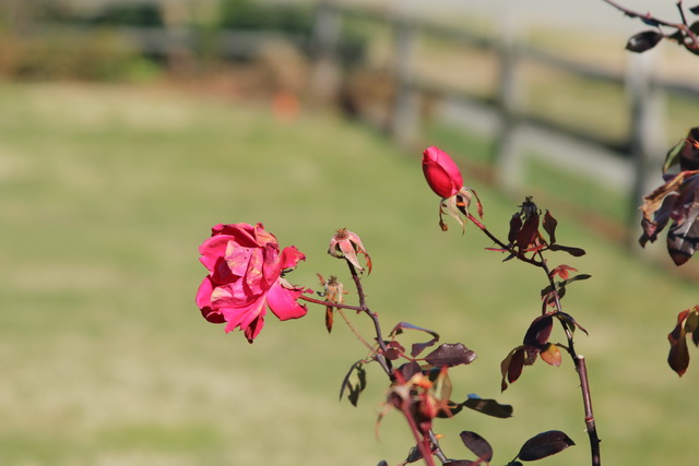 While out on a walk to get photographs, I came across a neighbour’s rose bush…(okay, not a neighbour, as they live about half a mile from me, so that would make them in my neighbourhood, but not a neighbour, yes?) and as I looked at it (the plant is massive, with many blooms), I came upon this composition which I am most in love with. It is simplistic in its nature, but also speaks volumes.