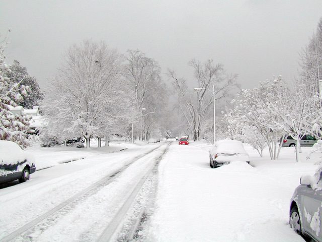 As you can see, even with a small amount of snow, the streets ice over and the drivers in this area? I think the tire tracks on the right say all that need be said. 🙂