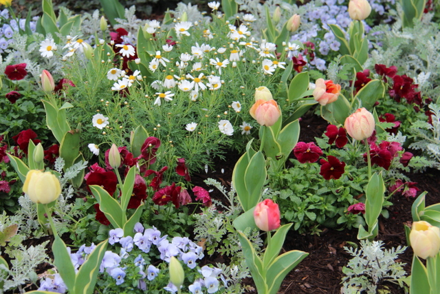 Daisies, Tulips and Dusty Miller come together to … I can’t explain it other than to say it makes me happy.