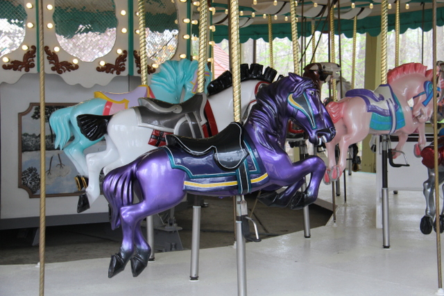 The richness of a metallic purple carousel horse beckons one to mount and ride… one more ride on the merry-go-round.