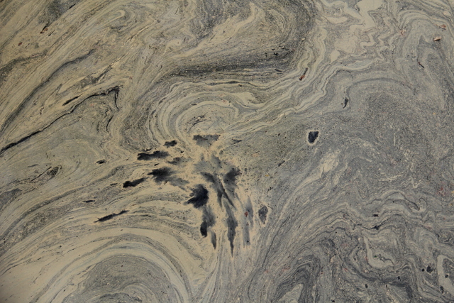 It may look like wood, or marble, but this is pollen, resting on the surface of the “Rhine” river flowing through Busch Gardens.