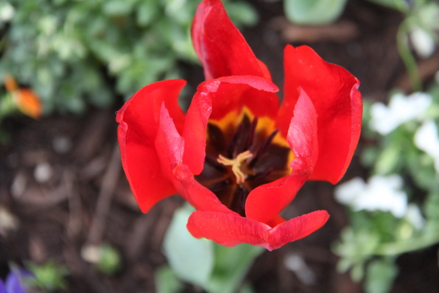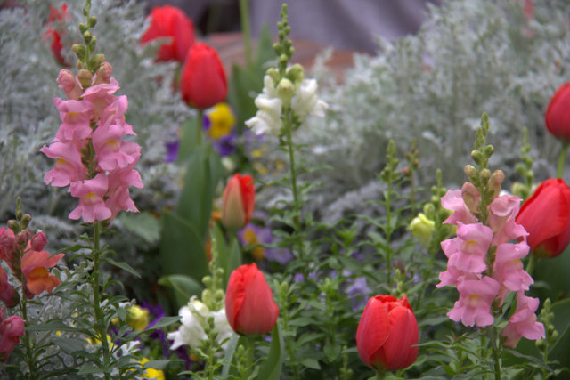 Using Bokeh (or depth of field to throw the background out of focus is something I enjoy experimenting with. Here, the red tulip and pink snapdragon are the same distance from the lens.
