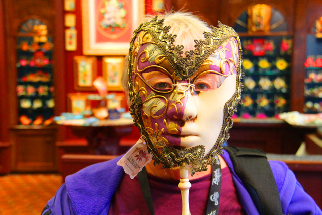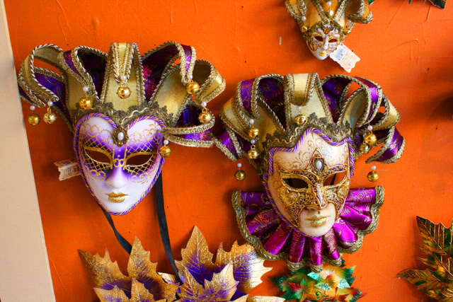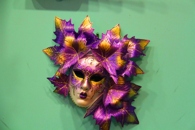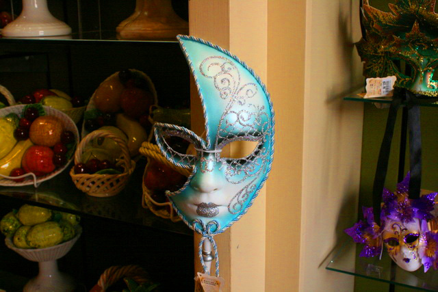 These “masks”, designed for decorative purposes only, run from $19.99 for the very small, basically unadorned, to well over $250 for the feathered and hand painted/glittered. While I don’t own any of these (I much prefer the one here from my great friend $ally and James, which adorns my mantle), I am taken in with their beauty when I visit.